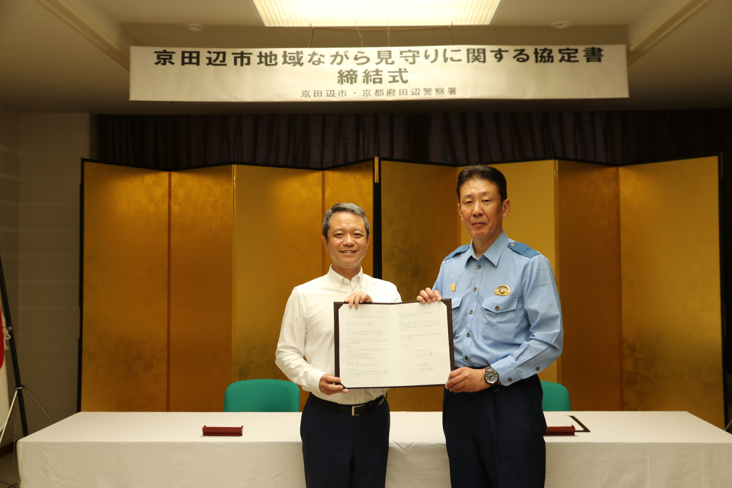 令和6年8月23日(金)、京田辺市と京都府田辺警察署は「京田辺市地域ながら見守り活動に関する協定書」を締結いたしました。