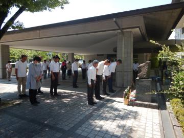 - 内容 原爆の犠牲となられた方々、戦争の犠牲となられた方々のご冥福をお祈りし、世界の恒久平和を願うため、1分間の黙とうを行いました。