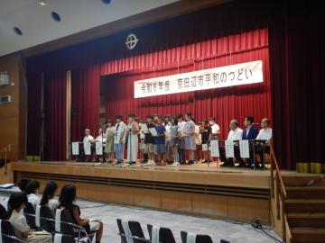 小・中学生平和大使による京田辺市非核平和都市宣言の朗読