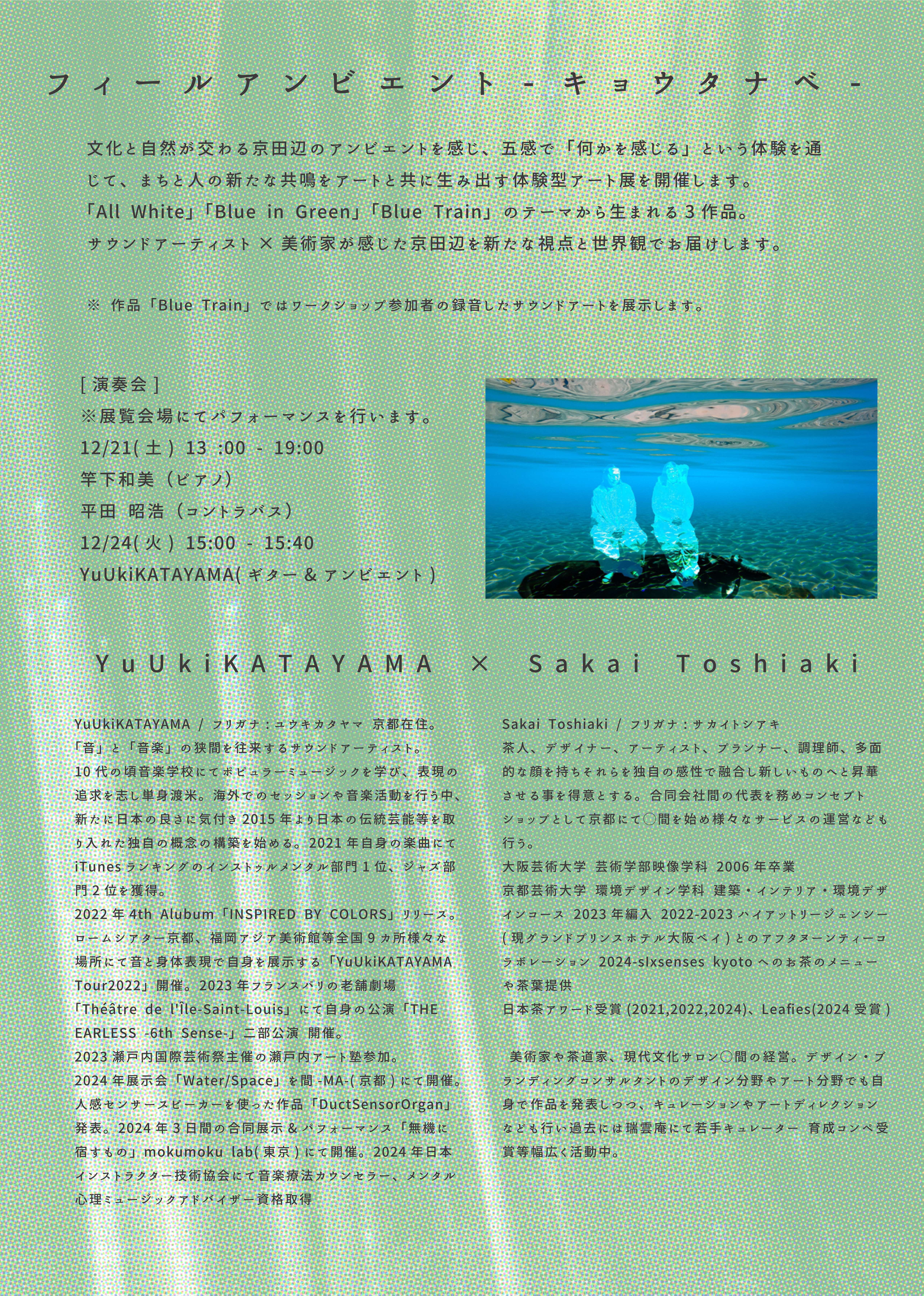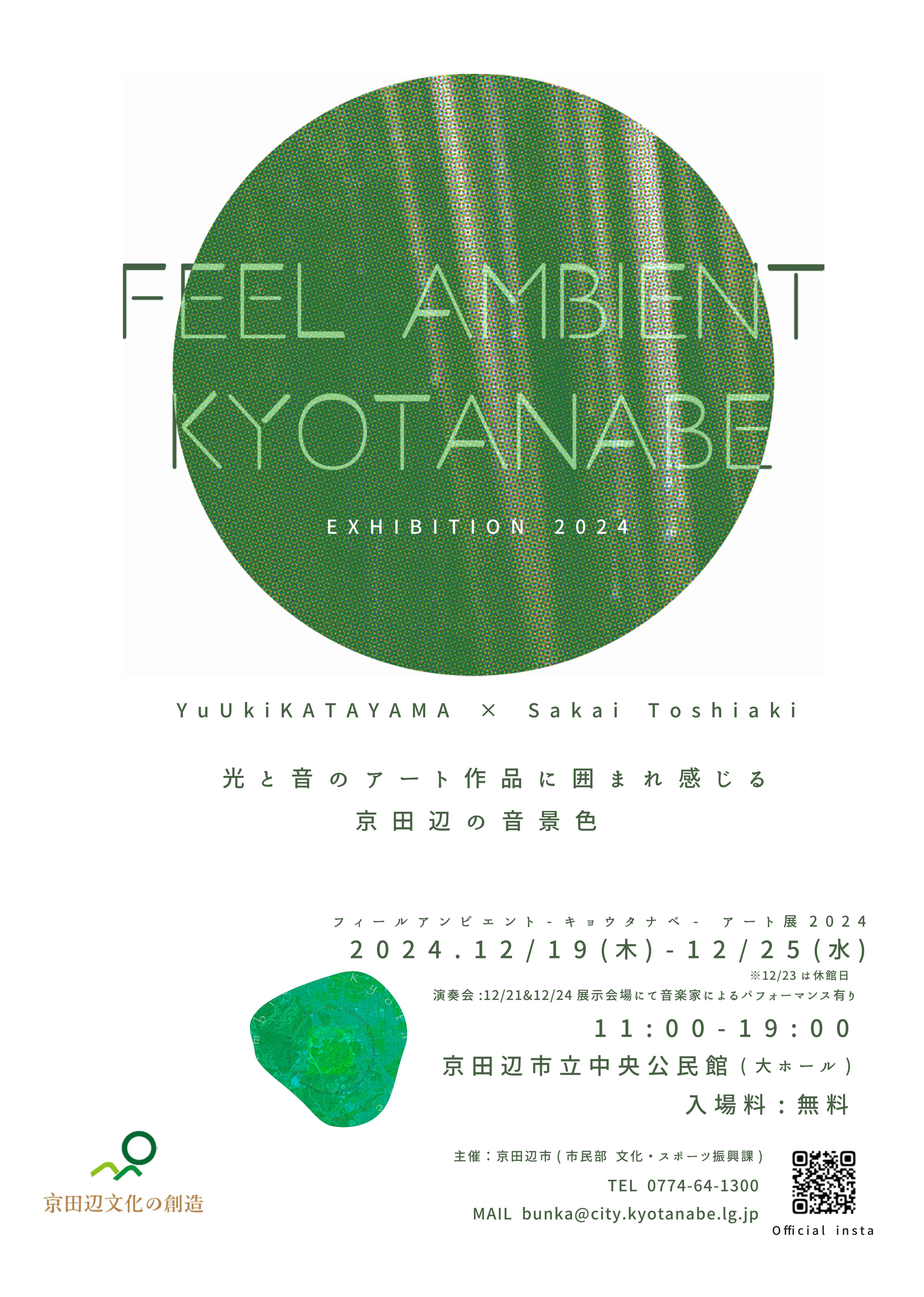 京田辺市では、《「Feel Ambient Kyotanabe」と題して、《アート展「光と音のアート作品に囲まれ感じる京田辺の音景色」》を初開催します。