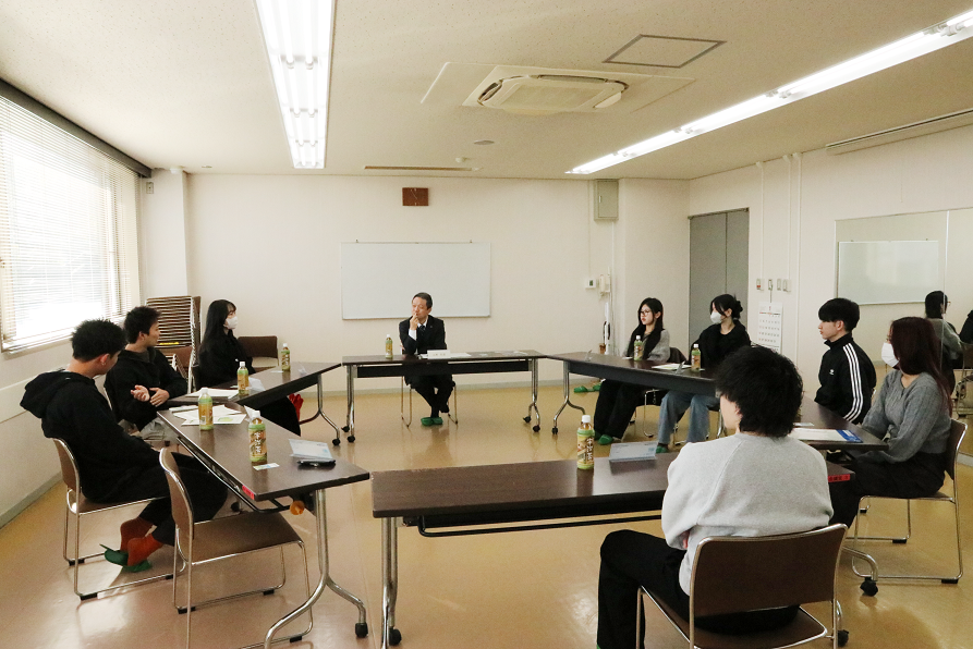 京田辺を「ずっと住み続けたいまち」「また戻って来たいまち」にするためにはどうすればよいか、若い世代の声を聞くため「二十歳のつどい」運営スタッフの皆さんと「将来の夢と京田辺のまちづくり」をテーマに意見交換を行いました。