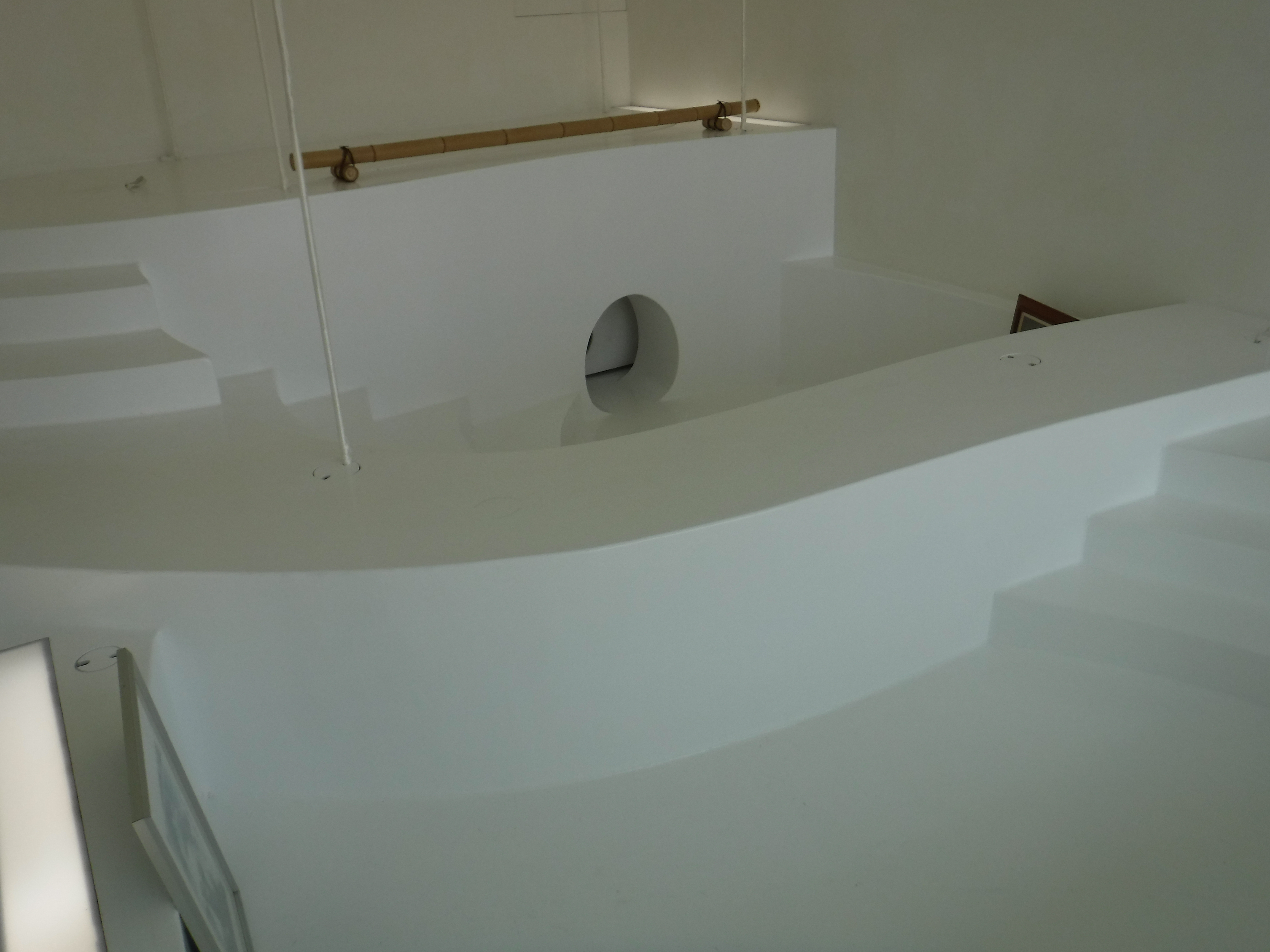 ギャラリーは、地域にお礼がしたいと思い、人が集まる、しゃべる、食べる、座る、寝転ぶことができる広い公民館のような地域の人が集まることができる広場を作ろうと建設しました。
