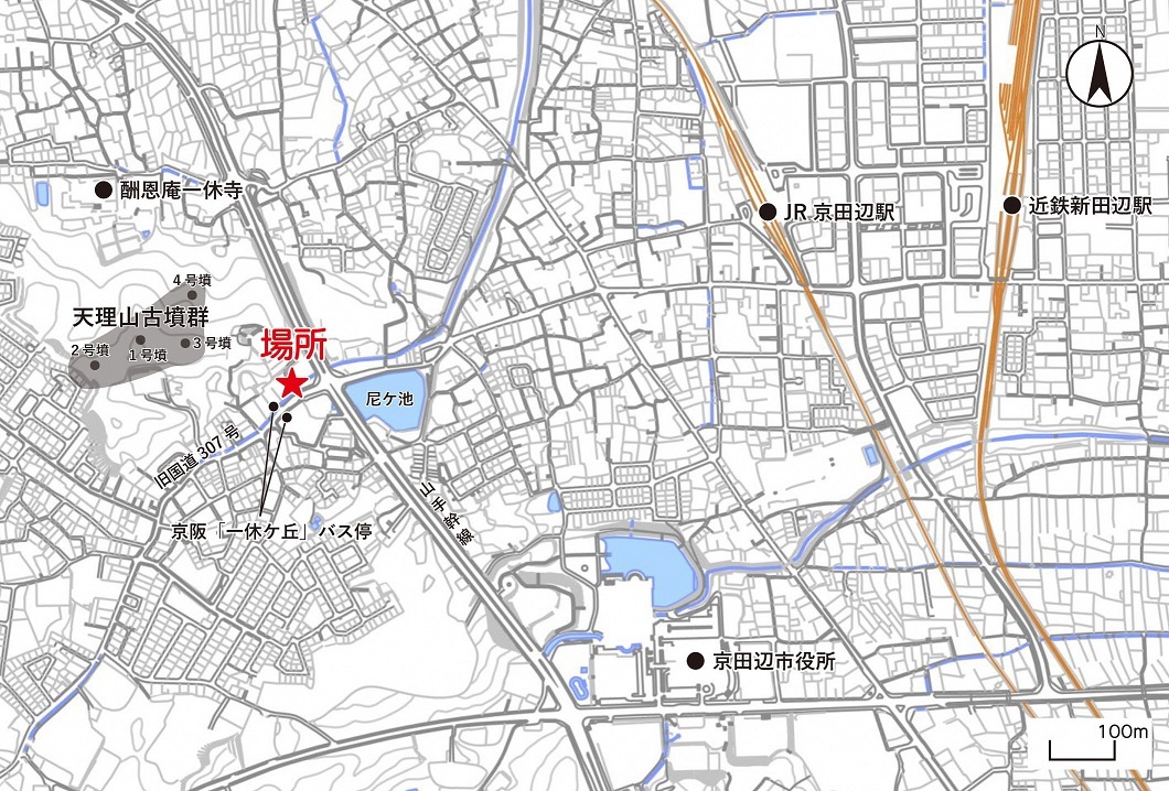 (JR学研都市線「京田辺」駅から西へ徒歩約1.4km、京阪「一休ヶ丘」バス停(旧307号線沿い)から徒歩約0.2km)