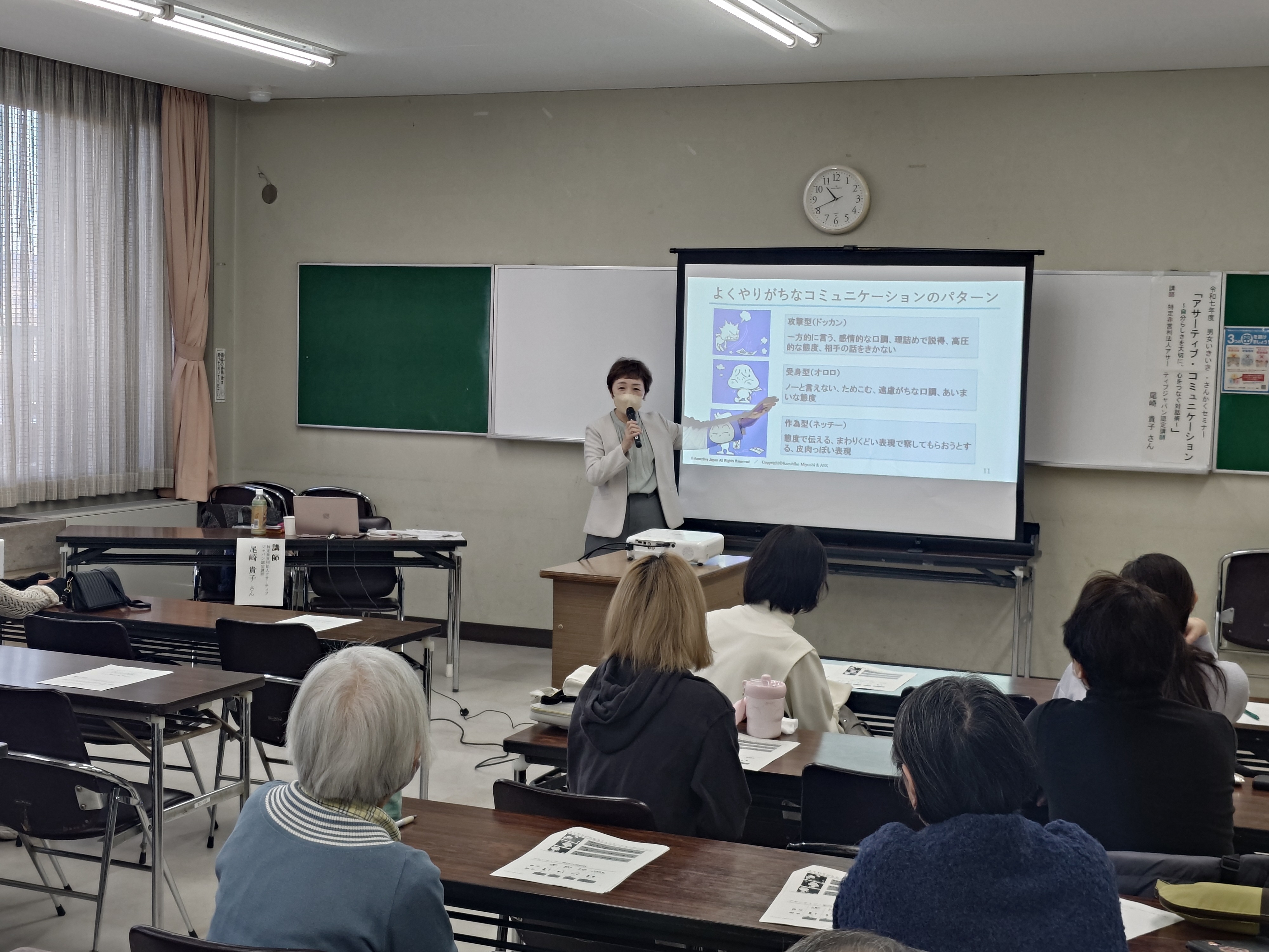 自分も相手も大切にするアサーティブの考え方を紹介する尾崎先生。