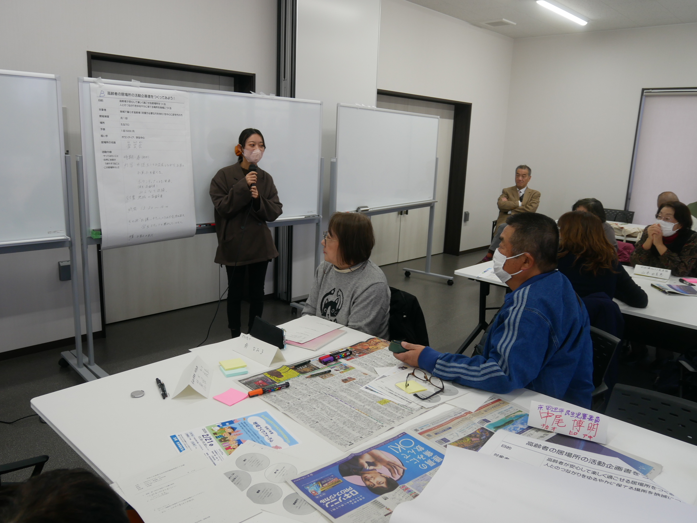 さらに、2月3日(火曜日)には、タナクロで第2回目の地域ケア会議が開催され、グループで高齢者向けの居場所づくりに関する活動企画書を作成しました。このグループワークでは、タナクロで行う具体的なプログラムの内容や予算について議論し、学生も一緒に考えることで、多世代交流について、より実現可能なアイデアが生まれました。