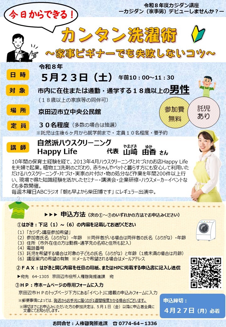 この講座でいろいろな家事について学び、あなたも「カジダン」デビューしませんか?