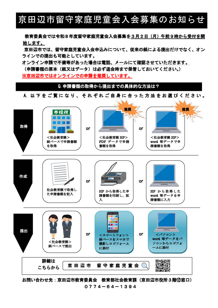 令和8年度京田辺市留守家庭児童会 入会募集