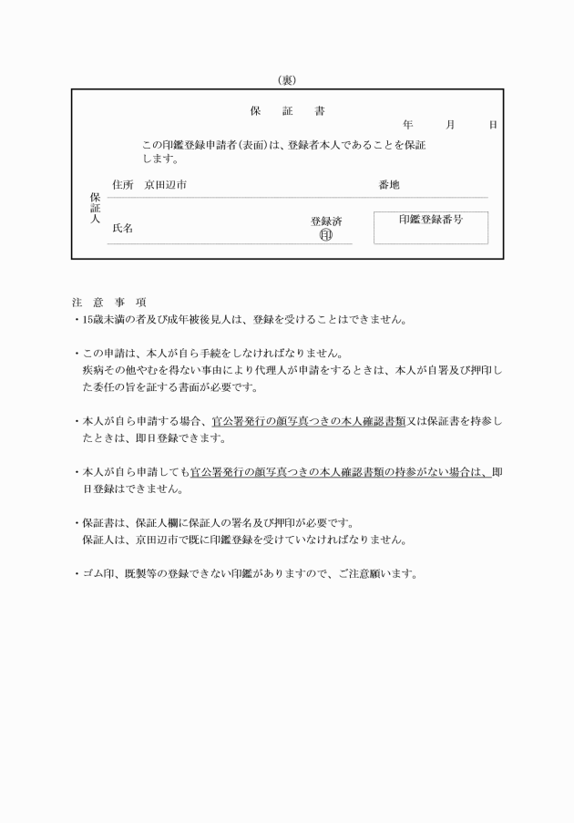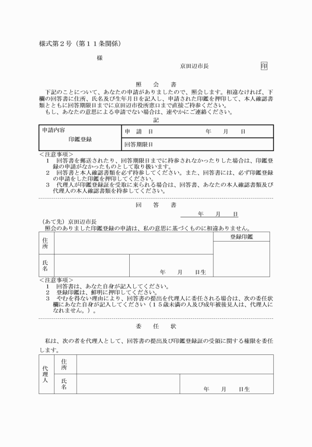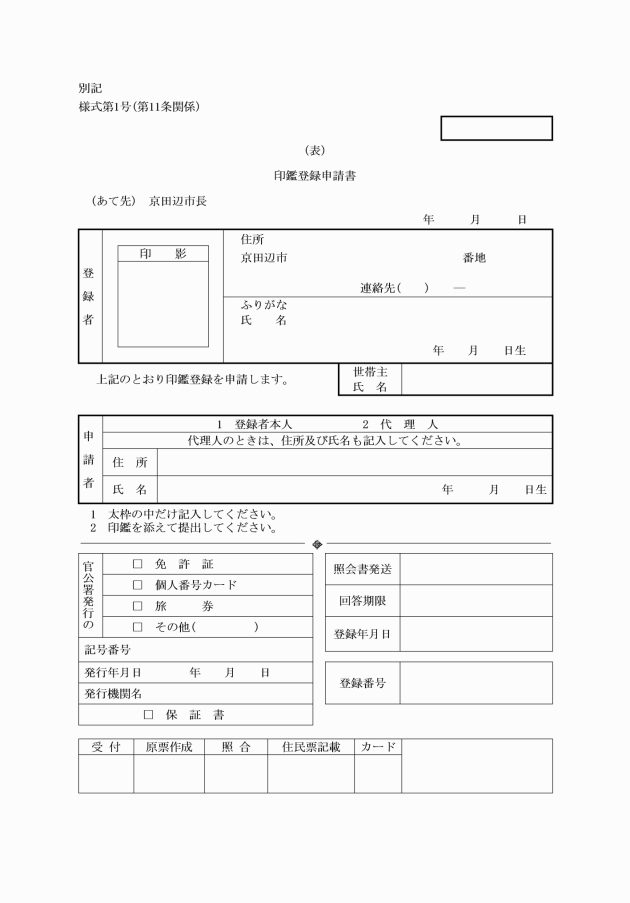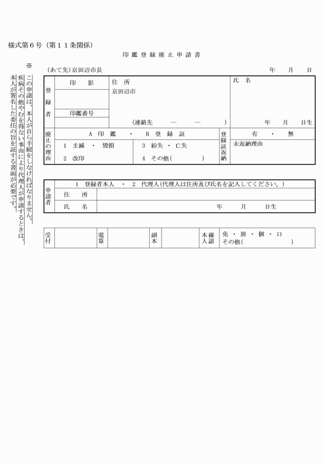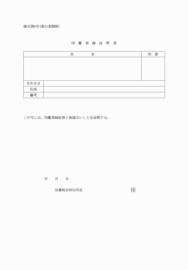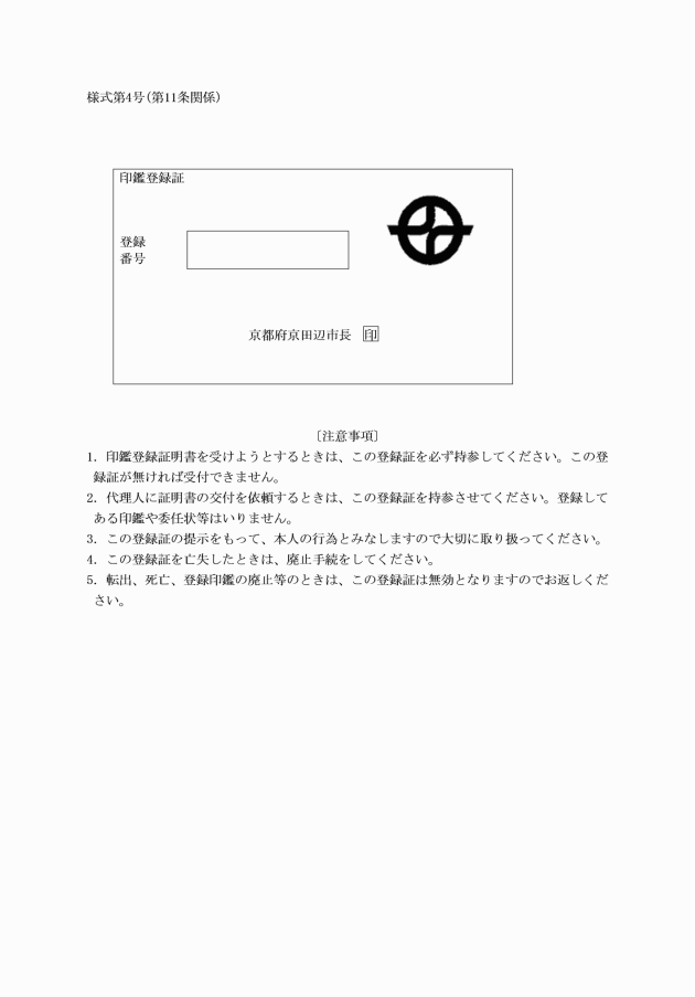 ○京田辺市印鑑登録及び証明に関する条例施行規則