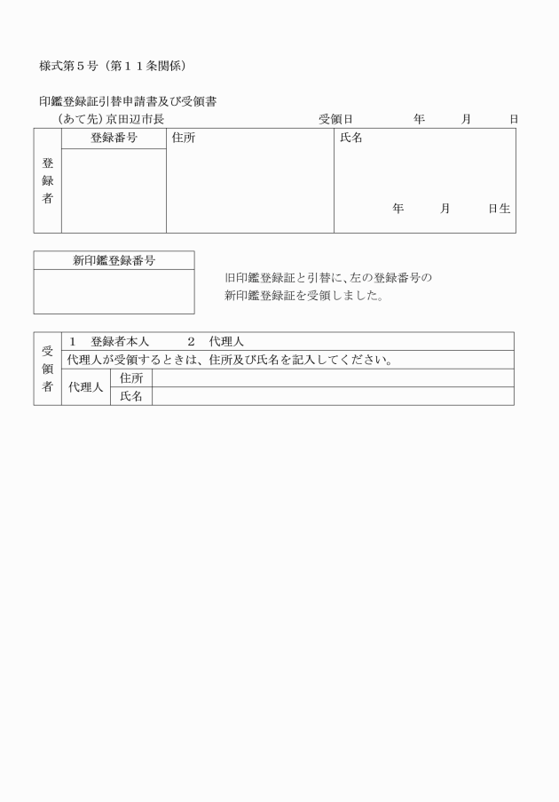 (5) 印鑑登録証引替申請書及び受領書 別記様式第5号