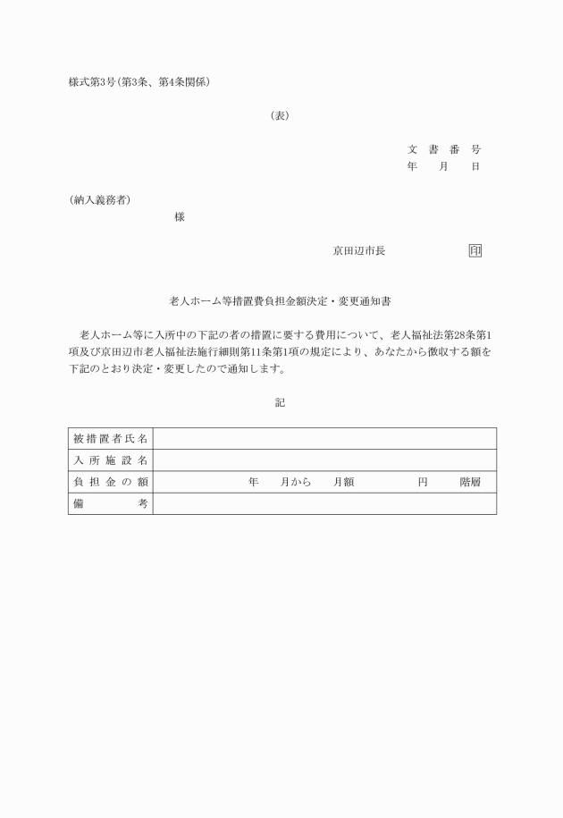 ○京田辺市老人ホーム等入所措置費負担金徴収規則