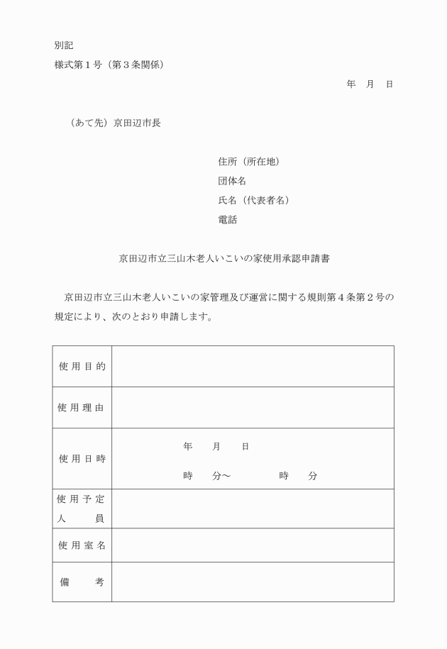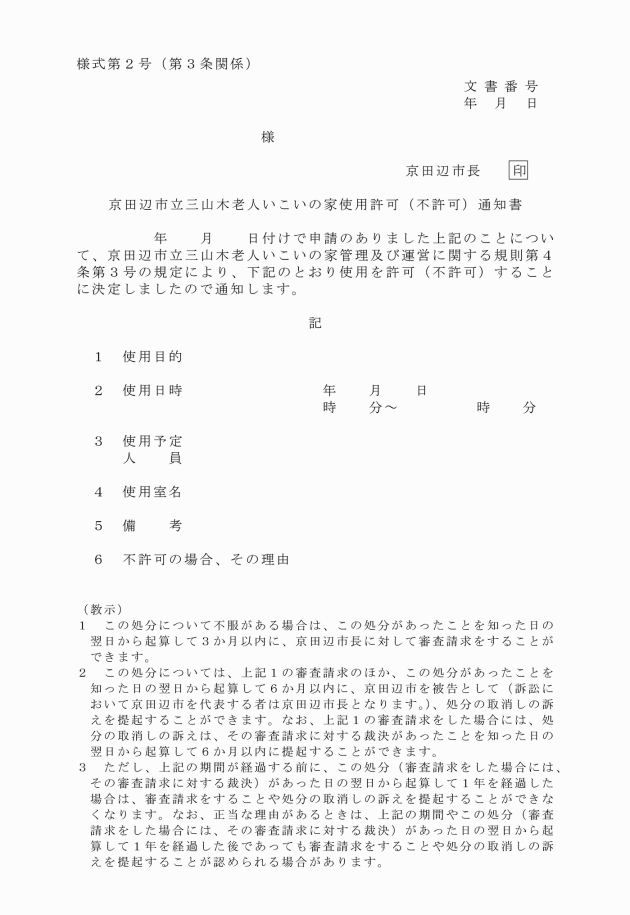 ○京田辺市立三山木老人いこいの家管理及び運営に関する規則