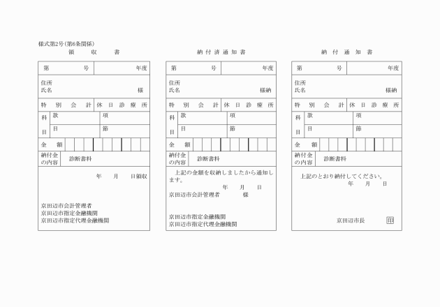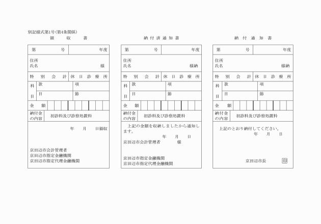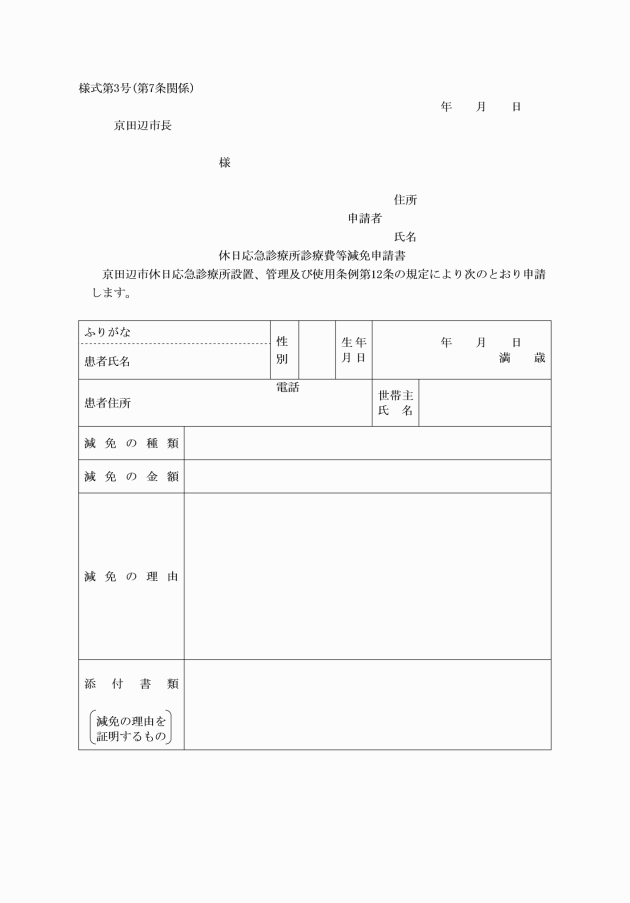 ○京田辺市休日応急診療所設置、管理及び使用条例施行規則