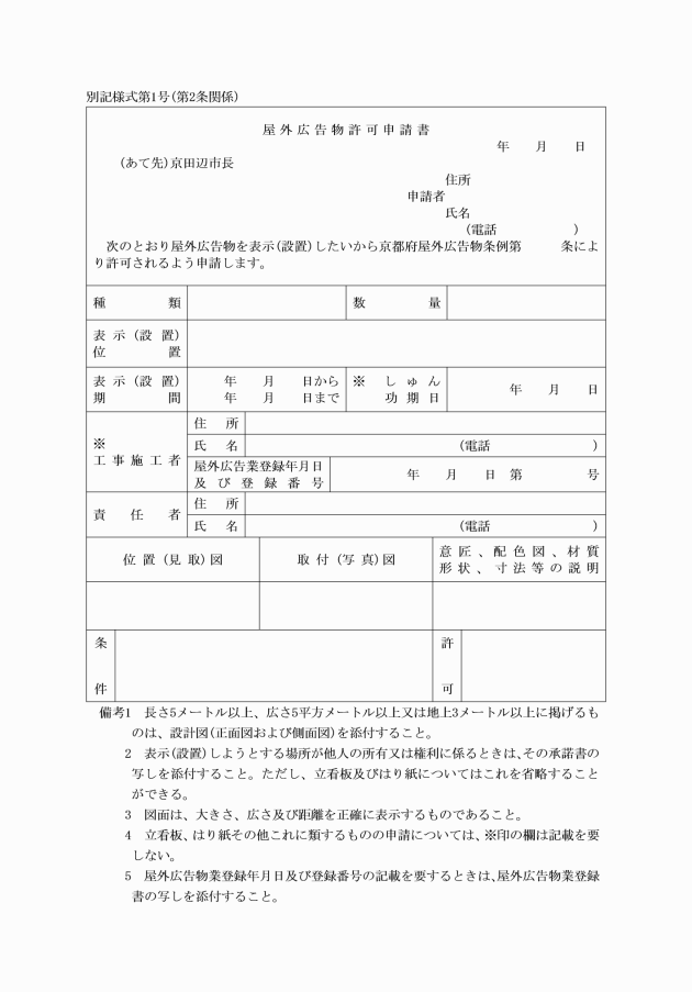 ○京田辺市の屋外広告物の規制に関する基準等を定める規則