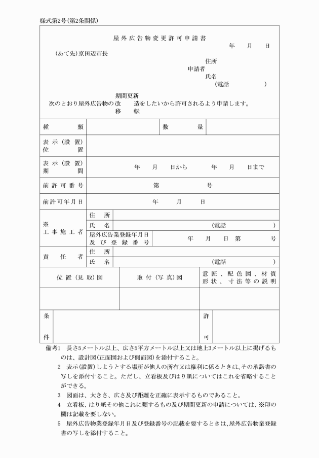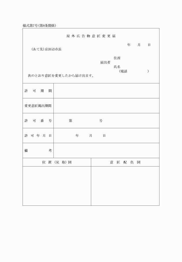 (2) 屋外広告物意匠変更届(別記様式第7号)