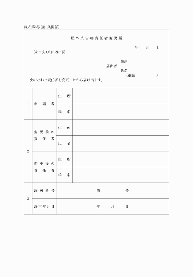 (1) 屋外広告物責任者変更届(別記様式第6号)