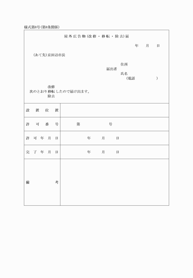 (3) 屋外広告物改修・移転・除去届(別記様式第8号)