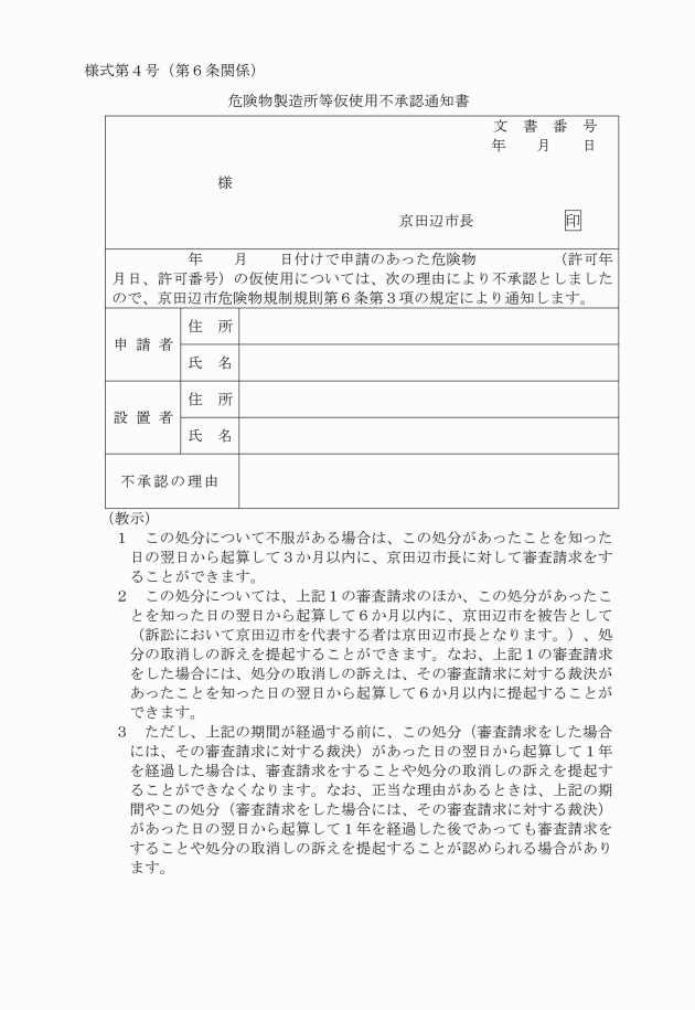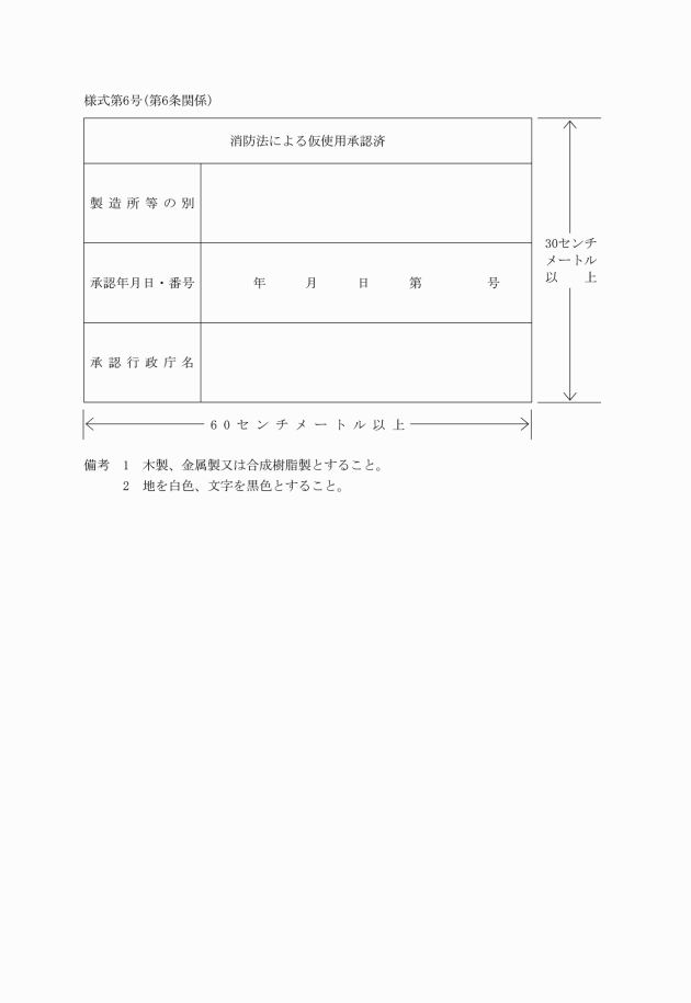3 消防長は、製造所等の仮使用を承認したときは、当該製造所等の見やすい箇所に仮使用の承認を受けている旨を表示した掲示板(別記様式第6号)を設けるよう指導するとともに、必要に応じて現地調査を行うものとする。