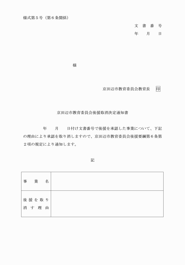 第6条 教育長は、偽りその他不正な手段により後援の承認を受けたものに対して、後援の承認を取り消すことができる。