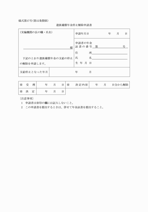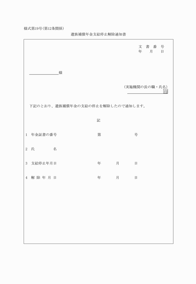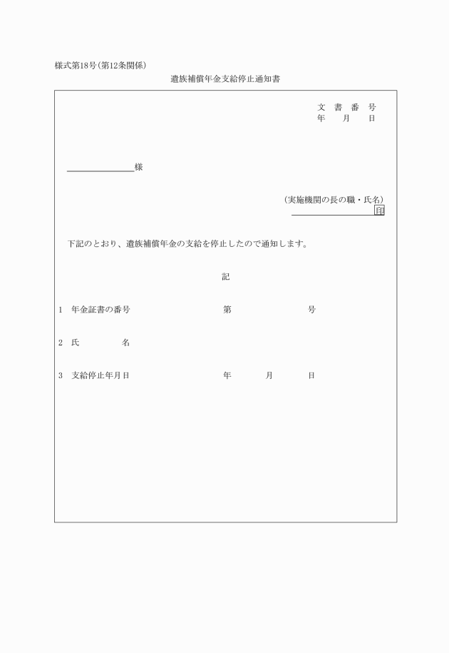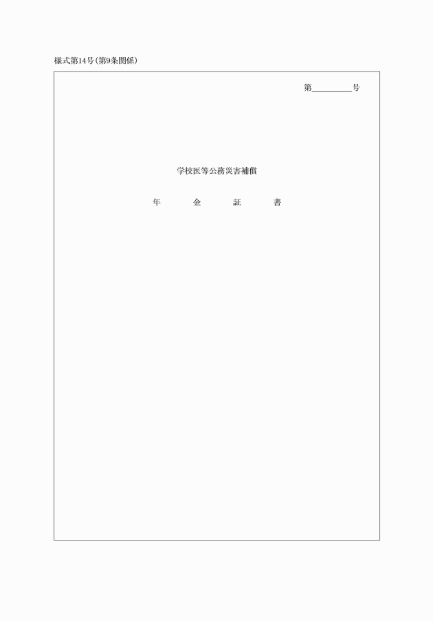 第9条 実施機関は、年金たる補償の支給に関する通知をするときは、当該補償を受けるべき者に対し、併せて年金証書(別記様式第14号)を交付しなければならない。