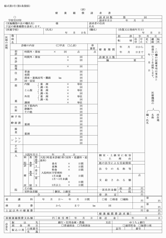 第15条 補償を受けるべき者が、事故その他の理由により、自ら補償の請求その他の手続きを行うことが困難である場合には、学校長は、その手続を行うことができるように助力しなければならない。