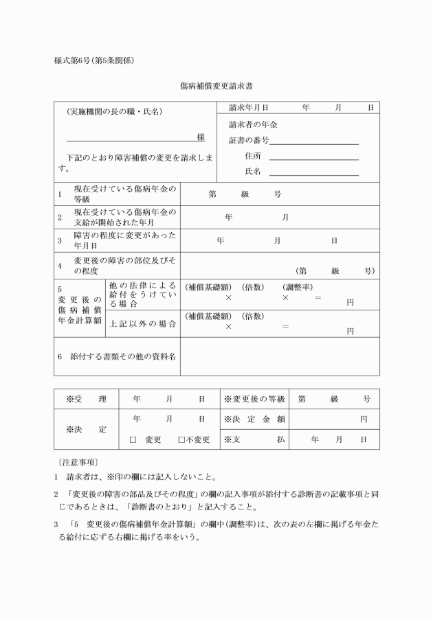 (2) 傷病補償年金又は障害補償年金を受ける者にあっては、その障害の程度に変更があった場合