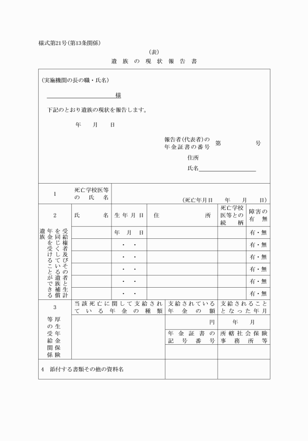 2 補償を受ける権利を有する者が死亡した場合には、その者の遺族は、遅滞なくその旨を実施機関に届け出なければならない。
