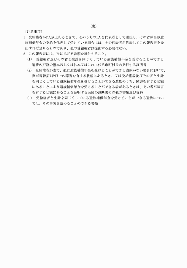 2 遺族補償年金を受ける権利を有する者は、前項の規定により代表者を選任し、又は代表者を解任したときは、そのことを証明することのできる書類を添え、速やかに書面により実施機関に届け出なければならない。