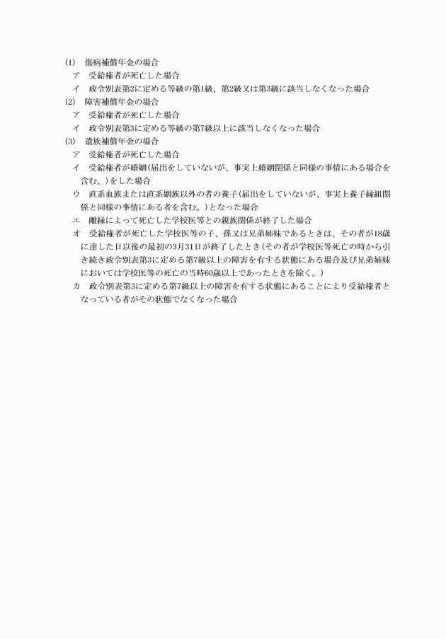 ア 政令第10条の規定により、その者の遺族補償年金を受ける権利が消滅した場合