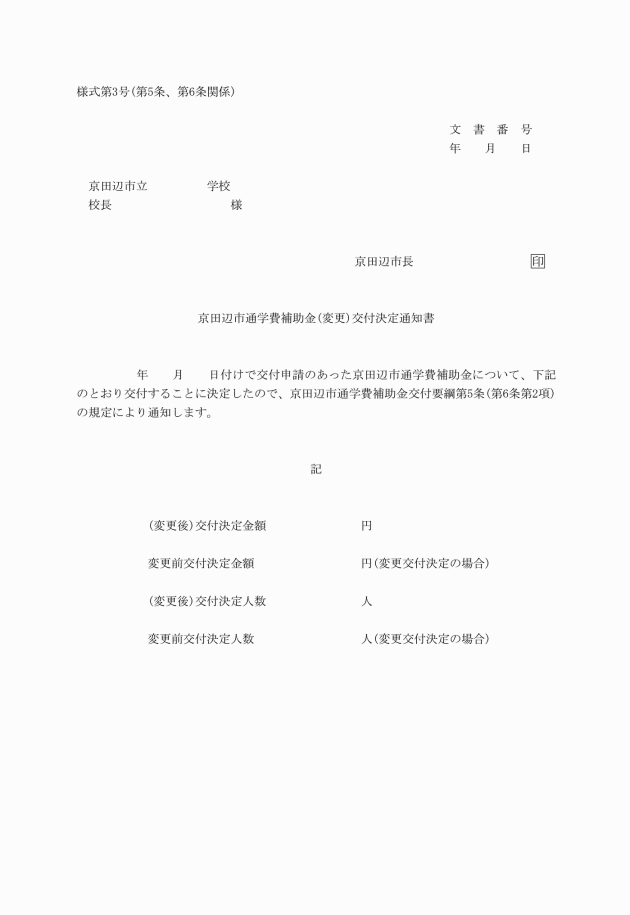 遠距離通学児童生徒に係る通学費補助金交付要綱(昭和49年京田辺市教育委員会告示第2号)の全部を改正する。
