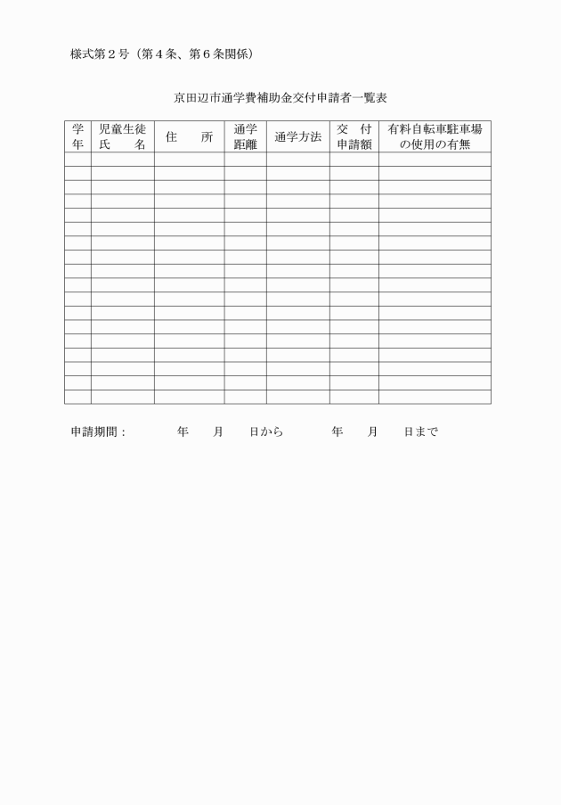 2 前項に定めるもののほか、京田辺市立培良中学校の通学区域以外に住所を有する者であって、学校選択による入学等の手続を行い、当該中学校へ入学し、又は転学することを教育委員会に認められたものが、公共交通機関を利用して通学する場合についても、補助金交付の対象とする。
