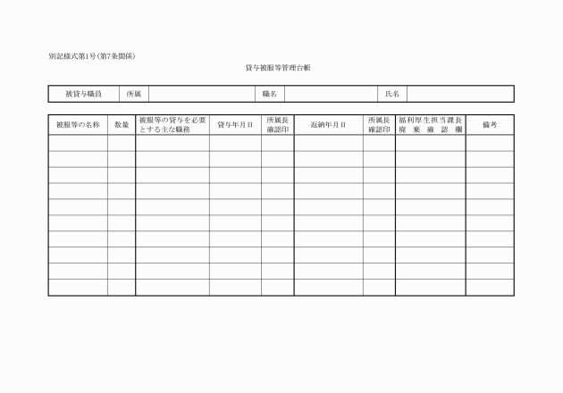 第6条 被貸与職員は、貸与被服等を善良な管理者の注意をもって使用し、良好な状態で保管しなければならない。