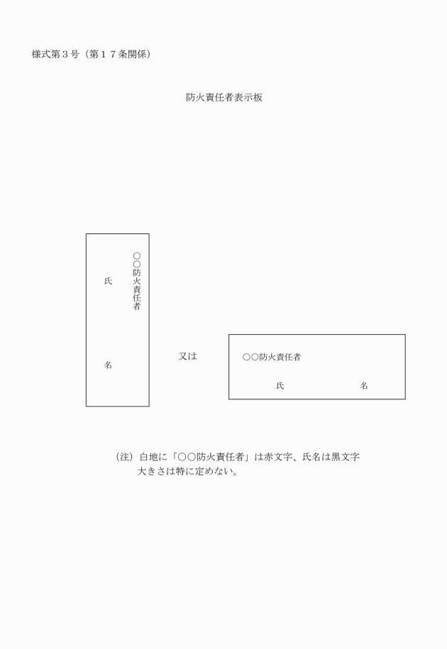 令第47条第1項第3号に規定する資格を有する者 | 消防士長又はこれに準ずる職以上の職に1年以上あったことを証する書面 |