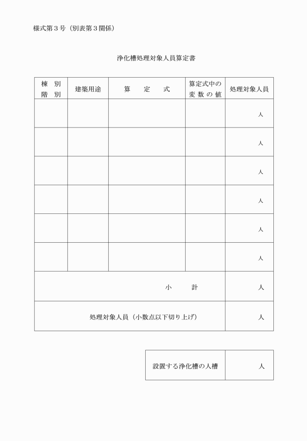 第3条 浄化槽の処理対象人員の算定については、別表第1のとおりとする。