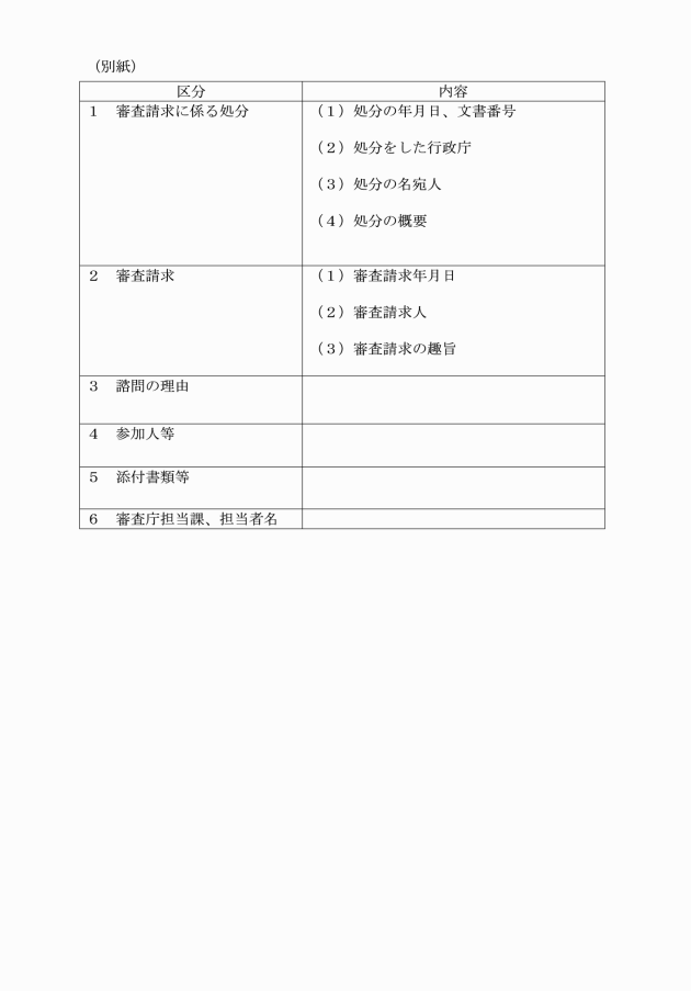 第3条 審査庁は、前条の諮問書に法第43条第2項に規定する文書のほか、次に掲げる文書を添付するものとする。