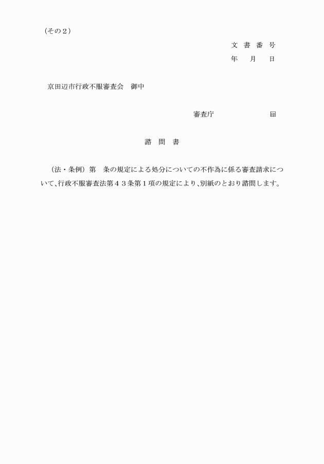 (2) 不作為についての審査請求に係る事件 別記様式第1号(その2)