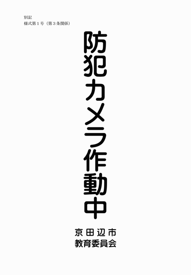 3 防犯カメラの設置場所には、防犯カメラが作動している旨及び設置者が教育委員会である旨を示すステッカー(別記様式第1号)を掲示し、市民に周知するものとする。