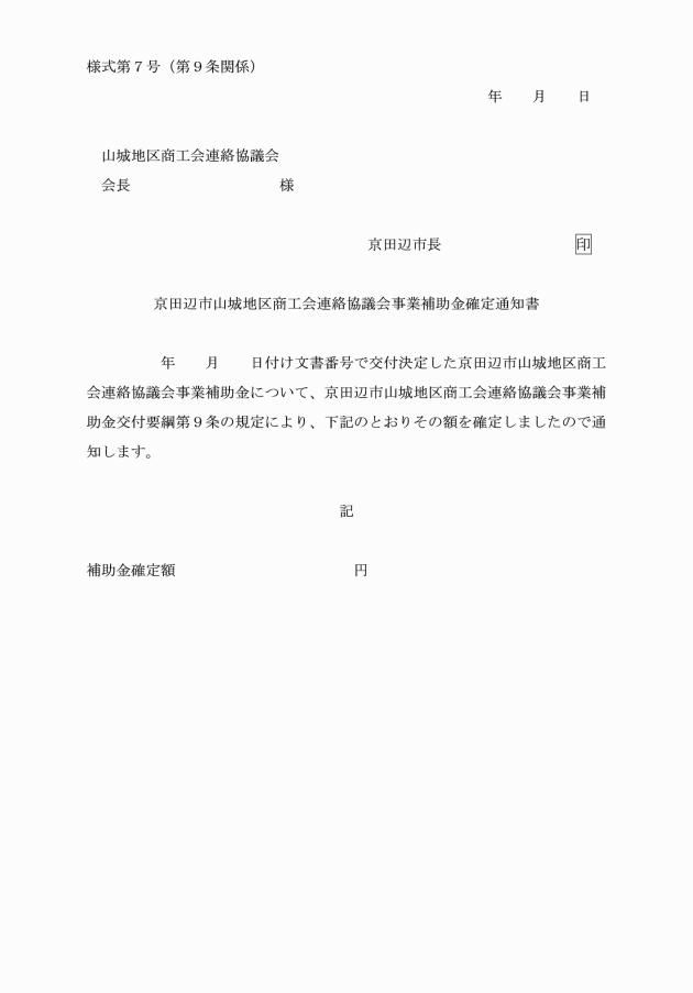 ○京田辺市山城地区商工会連絡協議会事業補助金交付要綱