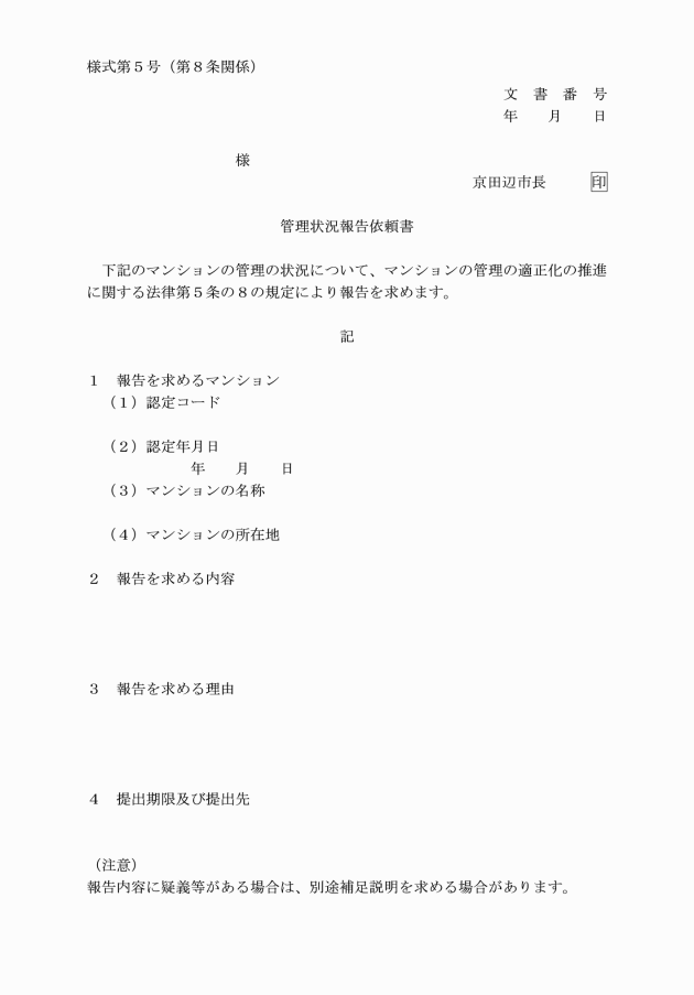 ○京田辺市マンションの管理の適正化の推進に関する法律施行細則