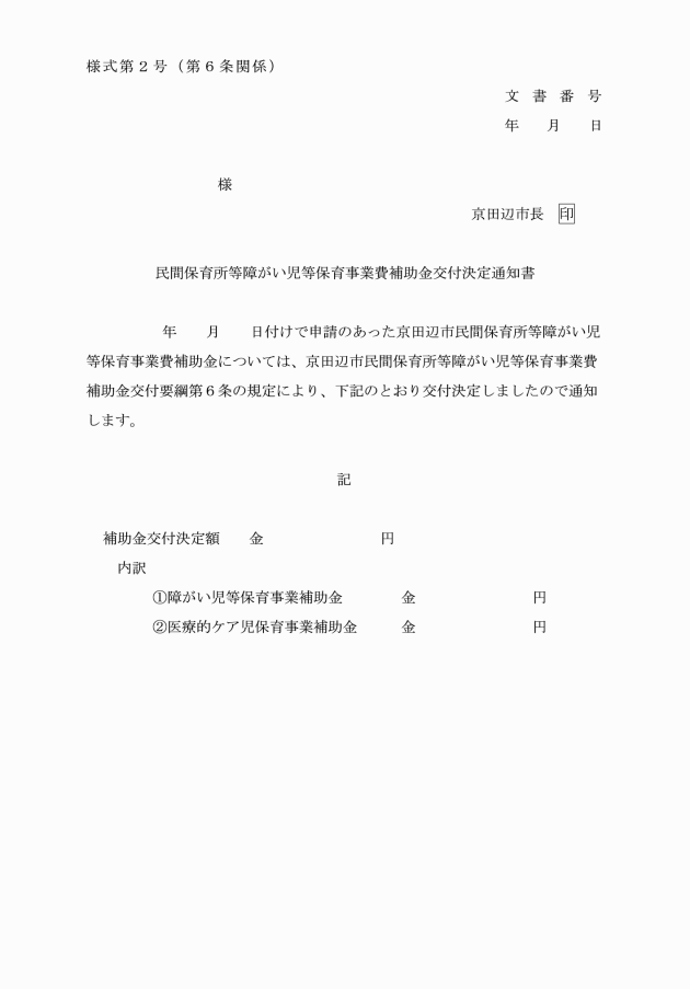 ○京田辺市民間保育所等障がい児等保育事業費補助金交付要綱
