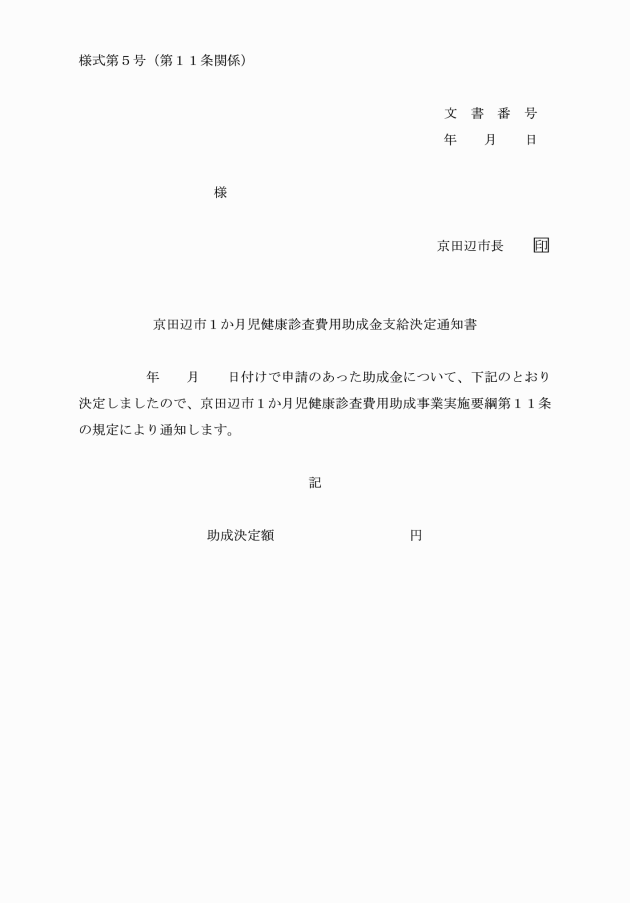 ○京田辺市1か月児健康診査費用助成事業実施要綱